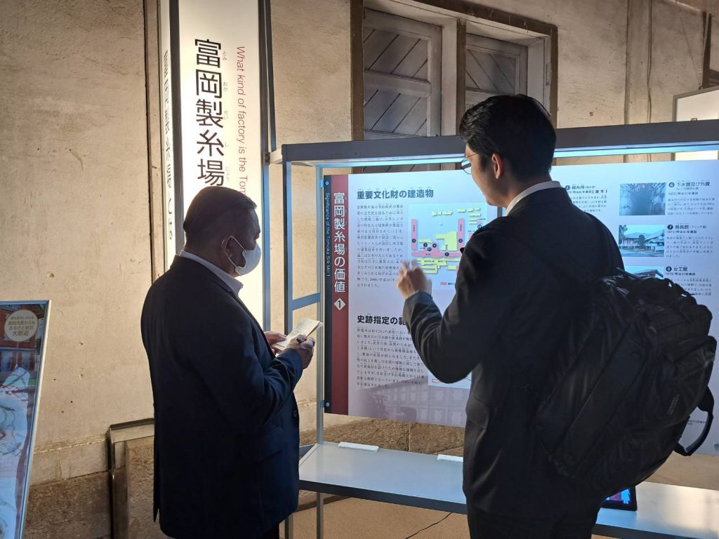 นายประกอบ เผ่าพงศ์ อธิบดีกรมหม่อนไหม พร้อมด้วยนายสกนธ์ วนาเศรษฐี ที่ปรึกษาการเกษตรต่างประเทศ ประจำกรุงโตเกียว นายสุเชษฎ์ ภูมิวัฒนะ หัวหน้าหน่วยส่งเสริมฉะเชิงเทรา นายสุชาย ศิริมาตร หัวหน้าหน่วยส่งเสริมเชียงราย และนางพะเยาว์ บุตรวาทิตย์ นักวิชาการเกษตรชำนาญการ เยี่ยมชมและศึกษาดูงาน ณ World Heritage site, Tomioka Silk Mill ประเทศญี่ปุ่น ซึ่งเป็นสถานที่ทางประวัติศาสตร์ที่อนุรักษ์และเก็บรวบรวมกระบวนการผลิตเส้นไหม กระบวนการสาวไหมด้วยเครื่องจักร กรรมวิธีการเก็บรักษารังไหม เส้นไหม และการส่งออกเส้นไหมไปสู่ผู้ประกอบการที่มีมายาวนานกว่า 115 ปี