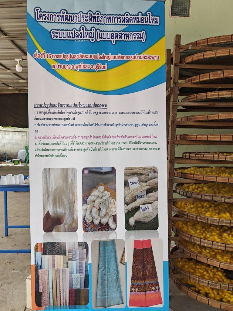 นายศรัญญู พูลลาภ รองอธิบดีกรมหม่อนไหม ลงพื้นที่ติดตามงานด้านหม่อนไหม ในจังหวัดบุรีรัมย์ โดยมีนางสาววันทนา ทองเล่ม ผู้อำนวยการศูนย์หม่อนไหมเฉลิมพระเกียรติฯ บุรีรัมย์ และเจ้าหน้าที่ให้การต้อนรับ โดยคณะฯ ได้ลงพื้นที่ตรวจเยี่ยมกลุ่มเกษตรกรผู้ปลูกหม่อนเลี้ยงไหม Tonmon Silk บ้านน้อยหัวสะพาน ตำบลบ้านยาง อำเภอพุทไธสง และเกษตรกรทอผ้ากลุ่มทอตะวัน ตำบลนาโพธิ์ อำเภอนาโพธิ์ เพื่อให้กำลังใจและรับฟังความต้องการของเกษตรกร