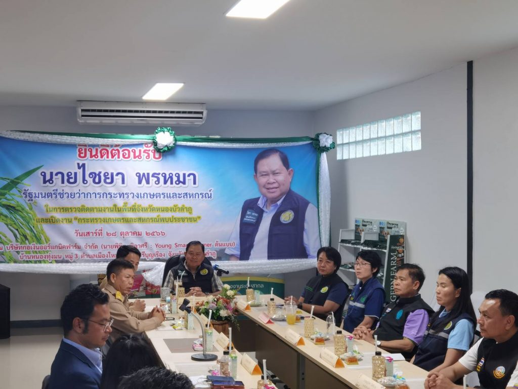 จากนั้นคณะรัฐมนตรีช่วยเกษตรฯ ได้เยี่ยมชมการออกหน่วยให้บริการคลินิกเกษตรแก่ประชาชน พร้อมทั้งเปิดงาน “กระทรวงเกษตรและสหกรณ์พบปะประชาชน” และมอบถุงยังชีพ ปัจจัยการผลิตทางการเกษตร และหญ้าอาหารสัตว์พระราชทาน เพื่อช่วยเหลือเกษตรกรผู้ประสบอุทกภัย ณ วิทยาลัยอาชีพศรีบุญเรือง อ.ศรีบุญเรือง จ.หนองบัวลำภู พร้อมทั้งเดินทางไปยัง บริษัท กอเงินออร์แกนิคฟาร์ม จำกัด เพื่อเยี่ยมชมกระบวนการผลิตแปรรูปสมุนไพร ตามนโยบายตลาดนำ นวัตกรรมเสริม เพิ่มรายได้ต่อไป