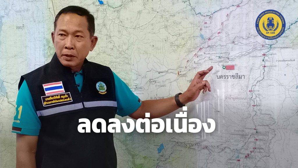 กรมชลฯ เผยระดับน้ำที่ปักธงชัยเริ่มลดลงอย่างต่อเนื่อง เร่งระบายน้ำท่วมลงแม่น้ำมูล
