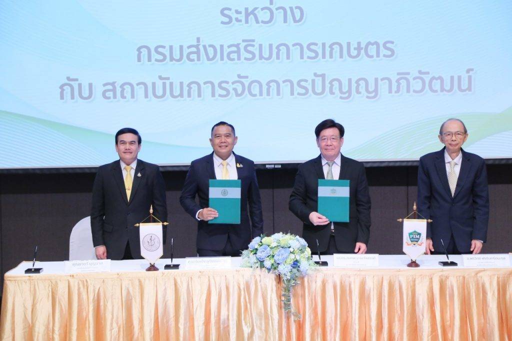 สำหรับการพัฒนาบุคคลากรทางการเกษตรของกรมส่งเสริมการเกษตรนั้น มีการดำเนินการอย่างระบบบต่อเนื่องในทุกระดับผ่านกระบวนการมีส่วนร่วม ตั้งแต่เยาวชนโดยผ่านกระบวนการพัฒนายุวเกษตรกร ปัจจุบันมียุวเกษตรกร จำนวน 5,292 กลุ่ม จำนวนสมาชิก 121,121 ราย ส่งเสริมและพัฒนาเกษตรกรรุ่นใหม่ให้เป็นผู้ประกอบการ โดยพัฒนาเกษตรกรรุ่นใหม่ให้เป็น Young Smart Farmer สู่ผู้ประกอบการเกษตรรุ่นใหม่ ปัจจุบันมี Young Smart Farmer จำนวน 13,051 ราย รวมทั้งส่งเสริมและพัฒนาเกษตรกรให้เป็น Smart Farmer ที่มีความรู้อย่างถ่องแท้เกี่ยวกับการประกอบอาชีพเกษตรกรรม นำข้อมูลมาใช้ในการวางแผนการผลิตและการตลาด ปัจจุบันมี Smart Farmer จำนวน 1,101,650 ราย ซึ่งการร่วมมือกับสถาบันการจัดการปัญญาภิวัฒน์ในครั้งนี้ จะช่วยผลักดันให้เกิดการพัฒนาบุคลากรที่มีองค์ความรู้ และประสบการณ์เพิ่มขึ้นในทั้งสองฝ่าย