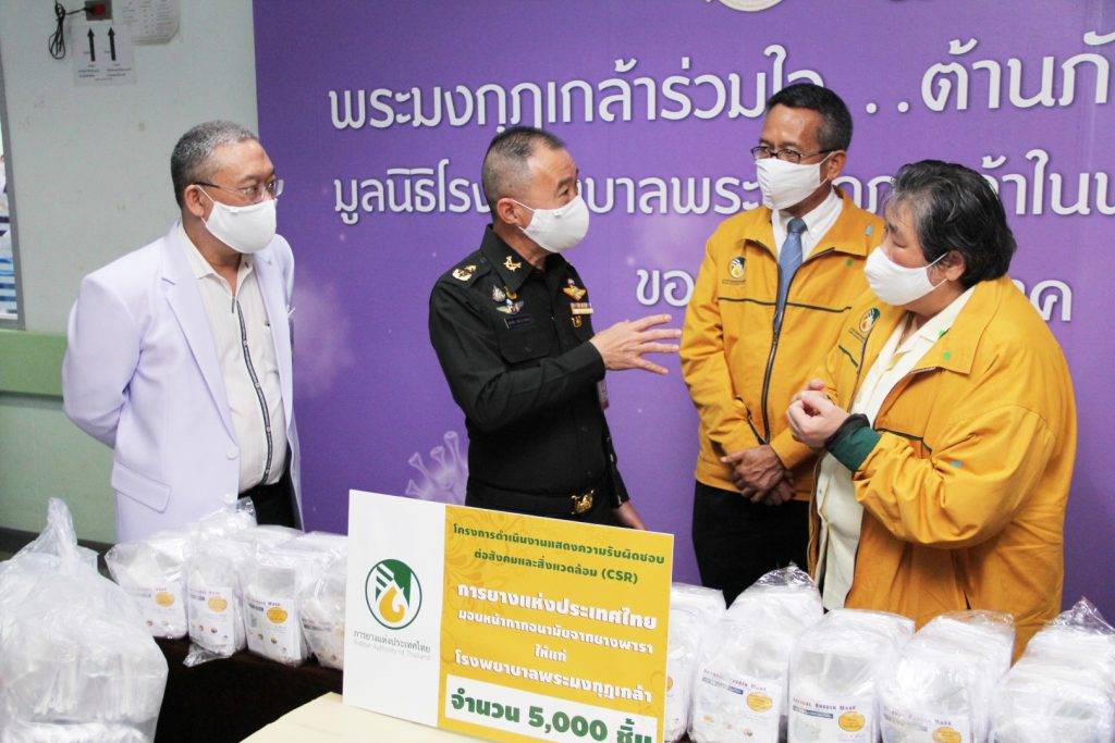 การยางเเห่งประเทศไทยส่งมอบความห่วงใยผ่านหน้ากากยางพารา 10,000 ชิ้น แก่ 2 รพ.ใหญ่
