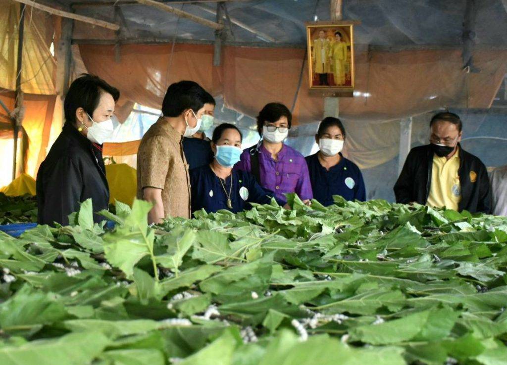 วันที่ 23 ธันวาคม 2564 นายปราโมทย์ ยาใจ อธิบดีกรมหม่อนไหม พร้อมด้วยคณะผู้บริหารกรมหม่อนไหม ลงพื้นที่ติดตามผลการดำเนินงานด้านหม่อนไหมของกลุ่มผู้ปลูกหม่อนเลี้ยงไหม ในโครงการสวนป่าเฉลิมพระเกียรติฯ บ้านหนองมะค่า ต.ท่าเคย อ.สวนผึ้ง จ.ราชบุรี เป็นกลุ่มวิสาหกิจชุมชนกลุ่มปลูกหม่อนเลี้ยงไหมตำบลท่าเคย มีเกษตรกร จำนวน 58 ราย แบ่งเป็นเกษตรกรปลูกหม่อนเลี้ยงไหม 19 ราย ซึ่งเลี้ยงไหมพันธุ์ไทยพื้นบ้าน (พันธุ์ทับทิมสยาม และพันธุ์ทับทิมสยาม x วนาสวรรค์) และพันธุ์ลูกผสม คือพันธุ์เหลืองสระบุรี รวมทั้งทอผ้าไหมผ้าพื้น และส่งเส้นไหมจำหน่ายให้มูลนิธิส่งเสริมศิลปาชีพในสมเด็จพระนางเจ้าสิริกิติ์ พระบรมราชินีนาถ และเกษตรกรปลูกหม่อนผลสด 39 ราย ซึ่งแปรรูปเป็นน้ำหม่อน แยมหม่อน หม่อนหยี โยและเกิร์ตหม่อน ส่งจำหน่ายในร้านทั่วไป อีกทั้งส่งหม่อนผลสดจำหน่ายให้โรงงานบริษัทใต้หวันด้วย