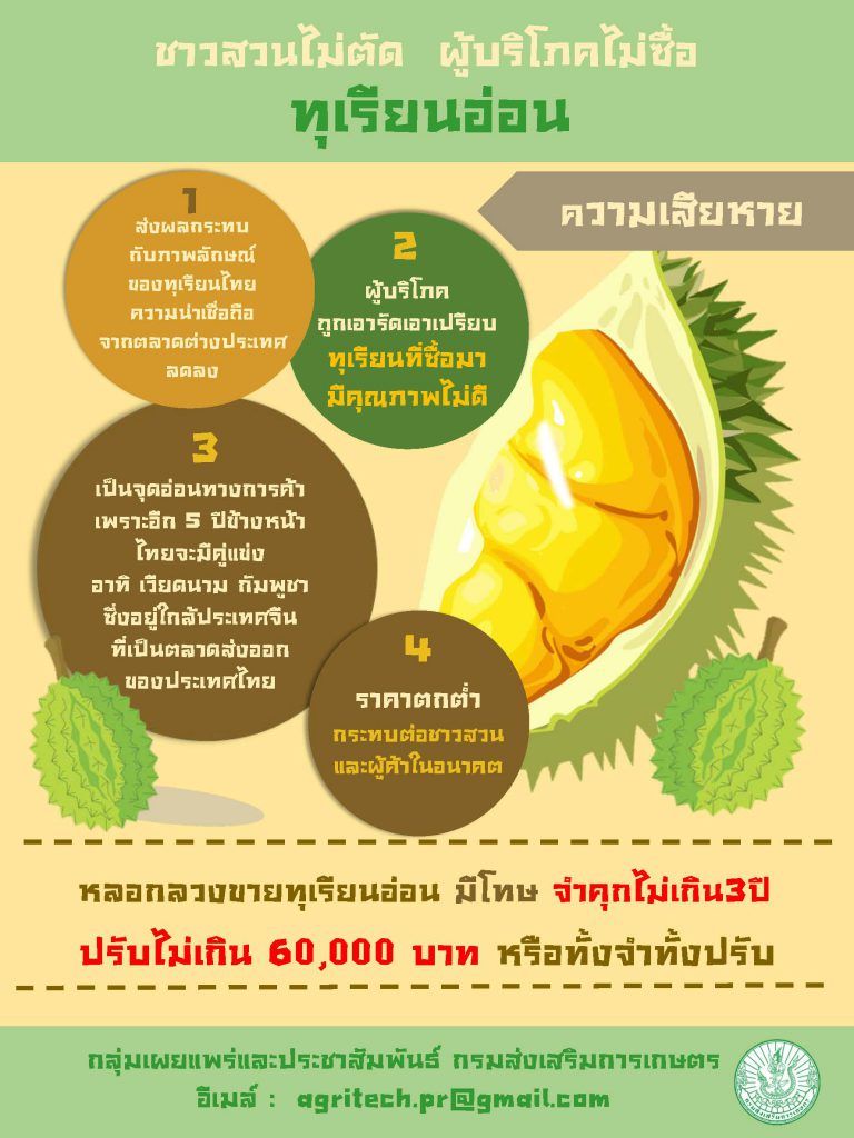 ขายทุเรียนอ่อน “ผิดกฎหมาย” 4 มี.ค. 25634 มี.ค. 2020 webmaster Infographic 1,712 ขายทุเรียนอ่อน “ผิดกฎหมาย” ข่าวที่เกี่ยวข้อง ถ่านอัดแท่ง พลังงานทดแทน เพิ่มรายได้ วัสดุเหลือทิ้งจากกาแฟ สู่ปุ๋ยหมักรักษ์โลก เกษตรเมืองสระแก้วได้พัฒนา “ไลน์บอทโรคข้าว” คำแนะนำการปลูกพืชใช้น้ำน้อย หลังเก็บเกี่ยวข้าวนาปี พืชผักกับฤดูฝน แปรรูปลำไยให้แซบนัว! กลายเป็น “ยำลำไย”
