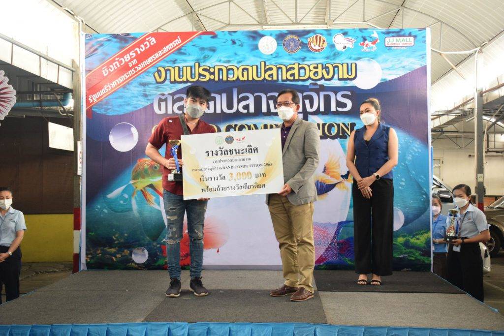 วันอาทิตย์ที่ 3 เมษายน 2565 นายเฉลิมชัย สุวรรณรักษ์ อธิบดีกรมประมง เป็นประธานในพิธีมอบถ้วยรางวัล “การประกวดปลาสวยงามตลาดปลาจตุจักร” เพื่อกระตุ้นเศรษฐกิจปลาสวยงามของไทยในช่วงสถานการณ์แพร่ระบาดของโรคติดเชื้อไวรัสโคโรน่า 2019 (COVID – 19) โดยมี นายธีระชัย ลิขิตสมบูรณ์ ผู้จัดการตลาดปลาจตุจักร และผู้ประกอบการปลาสวยงามร่วมให้การต้อนรับ ณ ลานเร่ ตลาดปลาจตุจักร กรุงเทพมหานคร ฯ