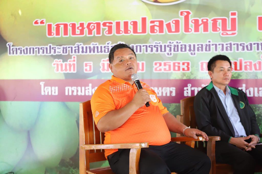 นายเข้มแข็ง ยุติธรรมดำรง อธิบดีกรมส่งเสริมการเกษตร กล่าวว่า “ในปี 2563 กรมส่งเสริมการเกษตร มีโครงการส่งเสริมและพัฒนาการผลิตแปลงใหญ่สินค้าเกษตรด้านพืช ผึ้งและแมลงเศรษฐกิจ จำนวน 1,856 แปลง โดยมุ่งหวังให้เกิดการพัฒนาแปลง พัฒนาผู้จัดการแปลง เชื่อมโยงตลาด และหวังผลสัมฤทธิ์ให้การขับเคลื่อน การส่งเสริมเกษตรแปลงใหญ่ มีประสิทธิภาพ เกิดผลผลิต ระดับ Smart Product สอดคล้องกับความต้องการของตลาด ขณะเดียวกัน สนับสนุนให้คณะกรรมการบริหารงานพร้อมคณะทำงาน ได้ดำเนินการรวมกลุ่ม เพื่อส่งเสริมการแปรรูป เพิ่มมูลค่าผลผลิต ส่งเสริมเกษตรทฤษฏีใหม่ เศรษฐกิจพอเพียง สร้างความเข้มแข็งให้แก่กลุ่มผู้ผลิต และร่วมวางแผนการผลิตตามแผนธุรกิจเกษตร เพื่อรองรับระบบตลาดที่แน่นอน”