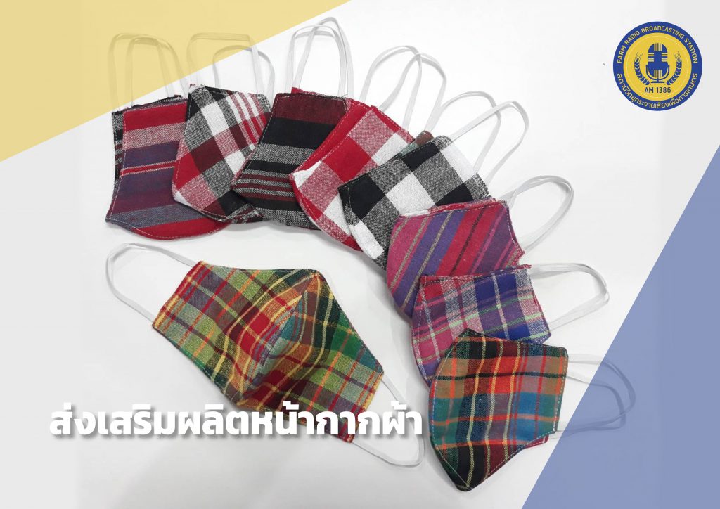 รองอธิบดีกรมส่งเสริมการเกษตร กล่าวเพิ่มเติมว่า ปัจจุบันมีวิสาหกิจชุมชนที่สามารถผลิตหน้ากากผ้าจำหน่ายแล้ว ในหลายพื้นที่ โดยผ้าที่นำมาผลิตเป็นหน้ากากนั้น มีทั้งที่ทำมาจากผ้าไหม ผ้าขาวม้า ฝ้าฝ้าย ผ้าทอมือ ผ้าพื้นเมือง ผ้ามัสลินและผ้าชนิดอื่นๆ โดยด้านในจะใช้ผ้าสาลู เป็นผ้ากรองด้านในเพราะมีคุณสมบัติในการระบายอากาศได้ดี ซึ่งข้อดีของหน้ากากผ้าจะสามารถซัก และนำกลับมาใช้ซ้ำได้ ยังเป็นการช่วยสนับสนุนสินค้าจากวิสาหกิจชุมชนได้อีกทางหนึ่งด้วย