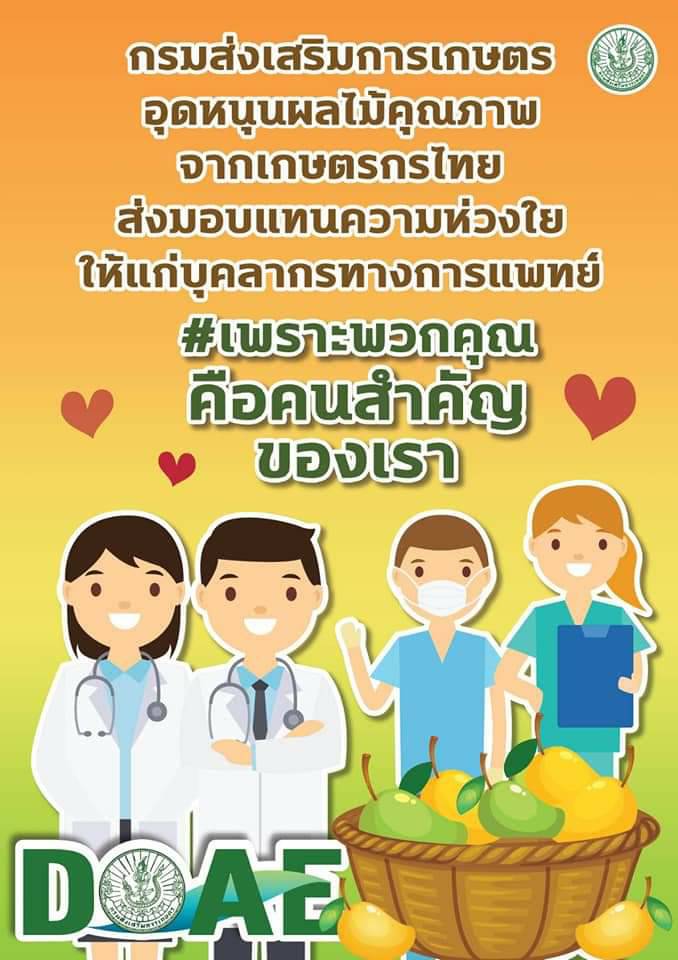 เกษตรฯ พลิกวิกฤตเป็นโอกาส ดันโครงการสนับสนุนสินค้าเกษตรไทยสู้ภัย COVID-19 ผุด Campaign “ซื้อสินค้าเกษตรไทย เกษตรกรอยู่ได้ ประเทศไทยอยู่รอด” แก้ไขปัญหาผลกระทบจากสถานการณ์การระบาดของโรค COVID-19 ที่มีต่อสินค้าเกษตรไทยทั้งไม้ผล พืชผัก ไม้ดอก และอื่น ๆ ที่ส่งออกไม่ได้ช่วงนี้ พร้อมเชิญชวนหน่วยงาน บริษัท ห้าง/ร้านต่าง ๆ และประชาชนร่วมอุดหนุนสินค้าเกษตรคุณภาพดีจากเกษตรกรโดยตรง ส่งมอบเป็นขวัญกำลังใจให้กับบุคลากรทางการแพทย์ และครอบครัวที่อยู่ห่างไกลแทนความรักห่วงใย