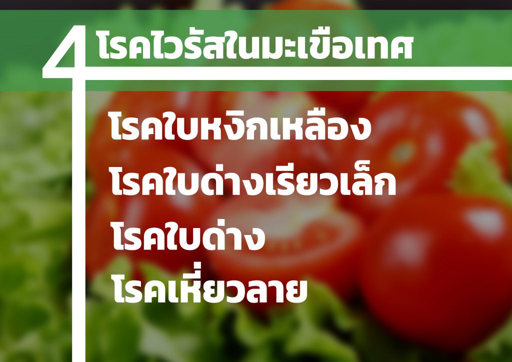 จากสภาพอากาศร้อนชื้นในช่วงนี้ กรมวิชาการเกษตร เตือนเกษตรกรผู้ปลูกมะเขือเทศเฝ้าระวังโรคที่เกิดจากไวรัส 4 โรค คือ โรคใบหงิกเหลือง โรคใบด่างเรียวเล็ก โรคใบด่าง และโรคเหี่ยวลาย ที่สามารถพบได้ทุกระยะการเจริญเติบโตของมะเขือเทศ กรณีโรคใบหงิกเหลือง จะพบใบยอดและใบอ่อนหดย่นหงิกสีเหลือง ขอบใบม้วนงอ ยอดเป็นพุ่ม ใบแตกใหม่เล็ก ต้นแคระแกร็น ไม่ติดผล หรือติดผลน้อยมาก ส่วนโรคใบด่างเรียวเล็ก มักพบใบด่างสีเขียวเข้มสลับสีเขียวอ่อน ม้วนงอ ต่อมาใบเรียวเล็กกว่าปกติ หากรุนแรงมาก ใบจะเรียวเล็กเหลือแต่เส้นกลางใบ ต้นชะงักการเจริญเติบโต ไม่ติดผล หรือมีผลเล็ก ถ้าเกิดโรคในระยะกล้า จะทำให้ต้นแคระแกร็น ไม่ติดผล