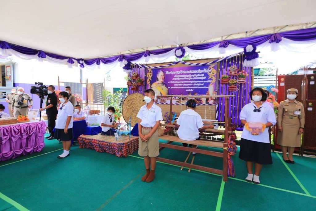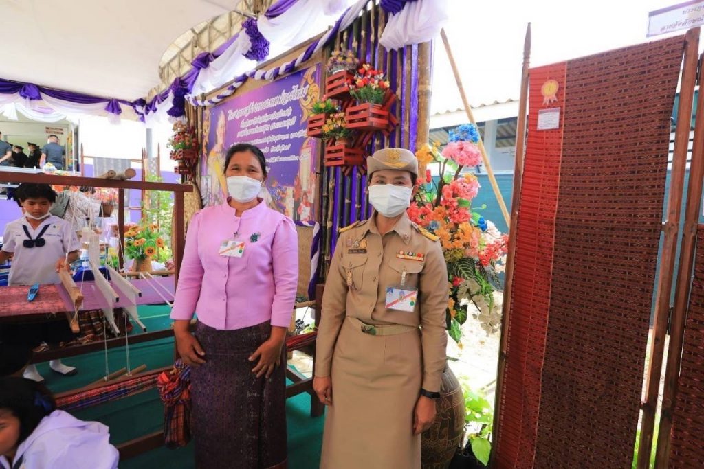 กรมหม่อนไหมร่วมเฝ้าฯ รับเสด็จ สมเด็จพระกนิษฐาธิราชเจ้า กรมสมเด็จพระเทพรัตนราชสุดาฯ สยามบรมราชกุมารี เสด็จฯ ทอดพระเนตร โรงเรียนตำรวจตระเวนชายแดนบ้านท่านผู้หญิงสุประภาดา เกษมสันต์ ตำบลตะเคียน อำเภอกาบเชิง จังหวัดสุรินทร์