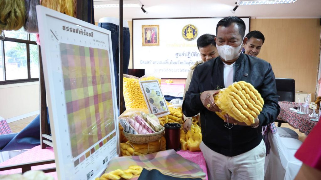 ในประเด็นการส่งเสริมการปลูกหม่อนเลี้ยงไหมของเกษตรกรในพื้นที่จังหวัดสุรินทร์ให้เพิ่มมากขึ้นเพื่อรองรับต่อความต้องการสินค้าหม่อนไหมที่เพิ่มมากขึ้น โดยมุ่งเน้นการสร้างมูลค่าเพิ่มให้กับสินค้าหม่อนไหม จากการพัฒนาและแปรรูปผลิตภัณฑ์ด้านหม่อนไหมให้มีรูปแบบที่หลากหลายและน่าสนใจ เพื่อนำไปสู่การสร้างรายได้ให้เกษตรกรทั้งต้นน้ำ กลางน้ำ และปลายน้ำที่มั่นคงและยั่งยืน