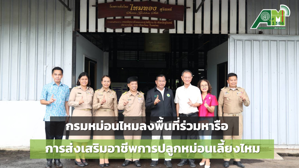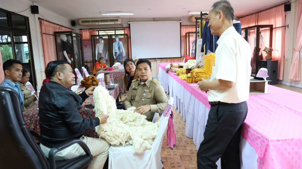 กรมหม่อนไหมลงพื้นที่ร่วมหารือการส่งเสริมอาชีพการปลูกหม่อนเลี้ยงไหม และช่องทางการพัฒนาสินค้าด้านหม่อนไหม กับศูนย์ปฏิบัติการนิคมสร้างตนเองเลี้ยงไหมจังหวัดสุรินทร์ในพระบรมราชานุเคราะห์ พร้อมด้วยบริษัทเรือนไหม-ใบหม่อน จำกัด