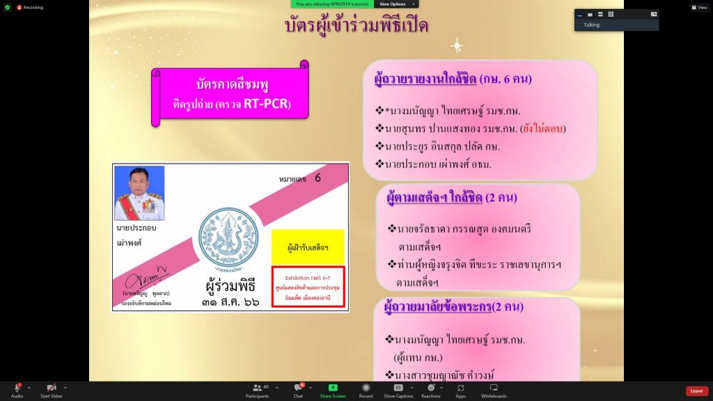 วันที่ 25 สิงหาคม 2566 นายประกอบ เผ่าพงศ์ อธิบดีกรมหม่อนไหม เป็นประธานการประชุมคณะกรรมการจัดงานตรานกยูงพระราชทาน สืบสานตำนานไหมไทย ครั้งที่ 18 ประจำปี 2566 ครั้งที่ 4/2566 ณ ห้องประชุมไหมแพรวา ชั้น 1 อาคาร 5 ชั้น กรมหม่อนไหมและผ่านระบบการประชุมทางไกลออนไลน์ Zoom Meeting โดยมี นายวัชรพงษ์ แก้วหอม นายศรัญญู พูลลาภ รองอธิบดีกรมหม่อนไหม พร้อมด้วย ที่ปรึกษากรมหม่อนไหม ผู้บริหารกรมหม่อนไหมทั้งส่วนกลางและส่วนภูมิภาค ตลอดจนเจ้าหน้าที่ที่เกี่ยวข้อง เข้าร่วมประชุม
