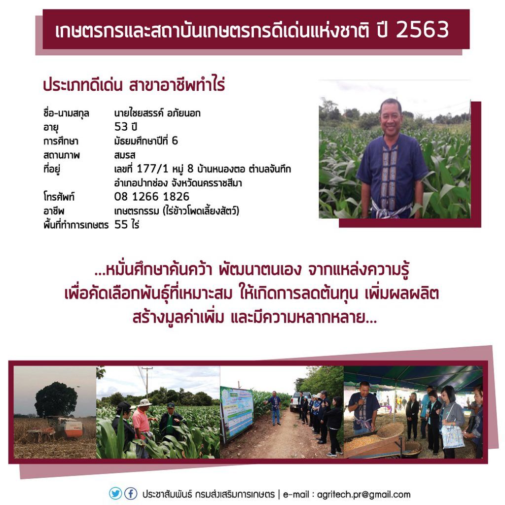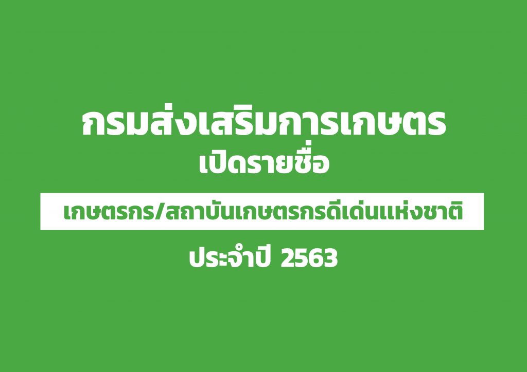 กรมส่งสริมการเกษตร เผยรายชื่อ“เกษตรกร และสถาบันเกษตรกรดีเด่นแห่งชาติ ปี2563”