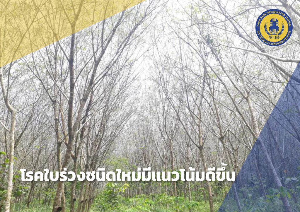 การยางแห่งประเทศไทย (กยท.) เผยสถานการณ์โรคใบร่วงชนิดใหม่ในยางพารามีแนวโน้มดีขึ้นอย่างต่อเนื่อง ล่าสุดพบพื้นที่ติดโรคเหลือเพียง 20 ไร่เศษ จากพื้นที่เคยติดโรคเกือบ 8 แสนไร่ ผลพวงจากการผลัดใบตามฤดูกาลและสภาพอากาศที่มีความชื้นต่ำในช่วงที่ผ่านมา ย้ำเกษตรกรชาวสวนยางอย่าชะล่าใจหมั่นตรวจสอบสวนยางพาราของตน หากพบโรคนี้ให้รีบแจ้ง กยท. ในพื้นที่ทันที