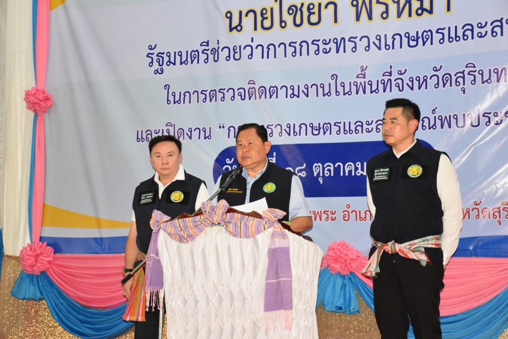 สำหรับงาน “กระทรวงเกษตรและสหกรณ์จังหวัดสุรินทร์พบประชาชน” หน่วยงานสังกัดกระทรวงเกษตรและสหกรณ์ในจังหวัดสุรินทร์ จัดขึ้นเพื่อให้บริการด้านวิชาการเกษตร นวัตกรรม และแก้ไขปัญหาด้านการเกษตรแก่เกษตรกรอย่างครบวงจร และเพื่อมอบปัจจัยการผลิตด้านการเกษตรแก่เกษตรกรในพื้นที่จังหวัดสุรินทร์ ตามนโยบายของกระทรวงเกษตรและสหกรณ์ที่ให้ความสำคัญในการพัฒนาภาคการเกษตร มุ่งเน้นการสร้างรายได้ในภาคการเกษตร โดยใช้หลักการ ตลาดนำ นวัตกรรมเสริม เพิ่มรายได้ โดยการสนับสนุนการเพิ่มประสิทธิภาพและผลิตภาพของภาคการเกษตรควบคู่ไปด้วยกัน มีการบูรณาการองค์ความรู้ด้านการบริหารจัดการด้านการเกษตร การบริหารจัดการน้ำให้มีประสิทธิภาพ