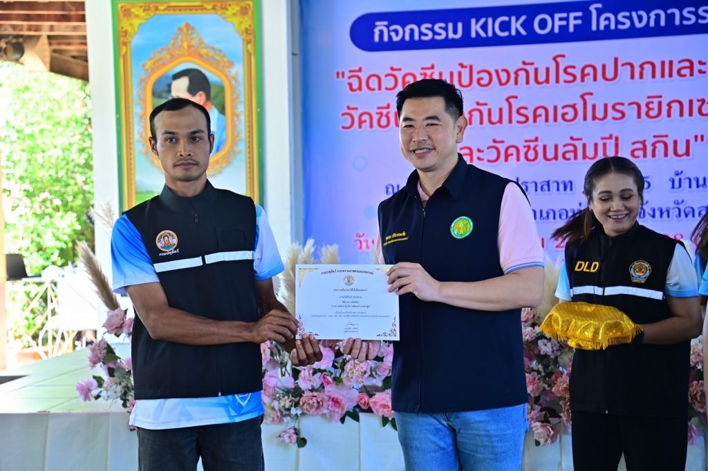 ผู้ช่วยเลขานุการรัฐมนตรีฯ กล่าวเพิ่มเติมว่า รัฐบาลให้ความสำคัญกับการจัดการปัญหาด้านโรคระบาดสัตว์ ซึ่งเป็นอาชีพเสริมสลับกับการเพาะปลูกของเกษตรกร กระทรวงเกษตรฯ โดยกรมปศุสัตว์จัดให้มีการ Kick Off รณรงค์ฉีดวัคซีนป้องกันโรคระบาดสัตว์ทั่วประเทศ เพื่อสร้างความมั่นใจให้กับคู่ค้าในต่างประเทศ พร้อมขอให้เกษตรกรดูแลสัตว์เลี้ยงอย่างใกล้ชิด ซึ่งการฉีดวัคซีนจะช่วยให้สัตว์มีภูมิคุ้มกัน และลดการแพร่โรคระบาดต่อสัตว์ตัวอื่นได้ ทำให้ผู้บริโภคได้รับผลผลิตที่มีคุณภาพ เกษตรกรมีรายได้ดี และคู่ค้าในต่างประเทศมีความมั่นใจในการค้ากับประเทศไทย