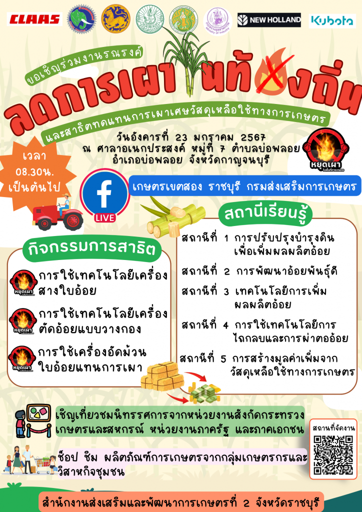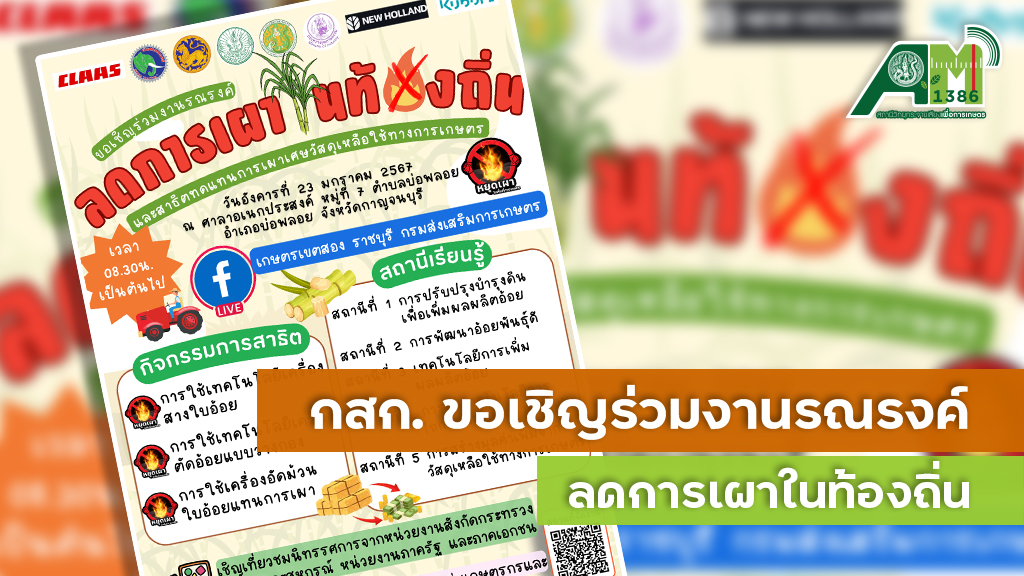 เชิญร่วมงาน รณรงค์ลดการเผาในท้องถิ่นและสาธิตทดแทนการเผาเศษวัสดุเหลือใช้ทางการเกษตร