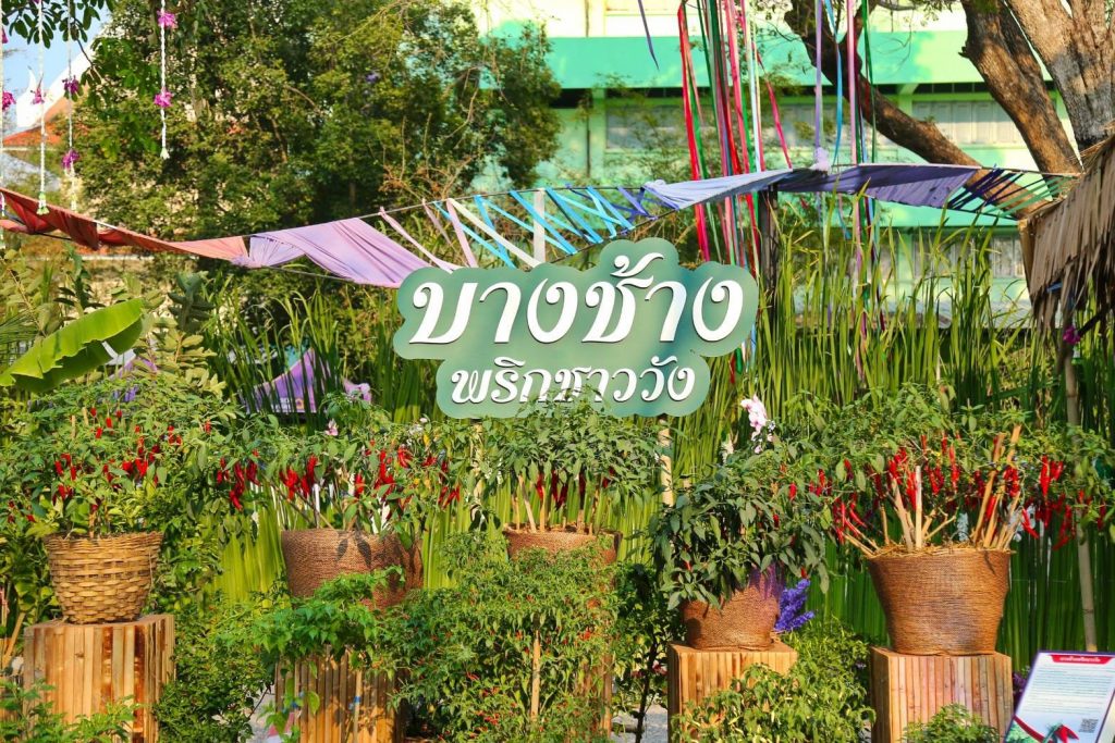 2) พริกบางช้าง จัดแสดงต้นพริกพันธุ์บางช้างที่ลักษณะพันธุ์ดี ตรงตามสายพันธุ์ และได้รับรางวัลจากการประกวดพริกบางช้าง ประจำปี พ.ศ. 2567 ในวันที่ 1 กุมภาพันธ์ 2567 ซึ่งพริกบางช้างเป็นพริกพันธุ์ท้องถิ่นของจังหวัดสมุทรสงคราม ที่พบตั้งแต่สมัยต้นกรุงรัตนโกสินทร์ ในรัชสมัยของพระบาทสมเด็จพระพุทธเลิศหล้านภาลัย รัชกาลที่ 2 ซึ่งอาหารชาววังจะใช้พริกบางช้างเป็นส่วนประกอบ เพราะมีกลิ่นหอม สีสวยสด และรสชาติเผ็ดไม่มากนัก โดยพริกบางช้างแห้งจะมีความเผ็ดเฉลี่ย 2.743 SHU กรมส่งเสริมการเกษตรได้เล็งเห็นความสำคัญจึงได้จัดการประกวดดังกล่าว และนำมาจัดแสดงเพื่อเป็นการอนุรักษ์และประชาสัมพันธ์ให้เป็นที่รู้จักอย่างกว้างขวาง