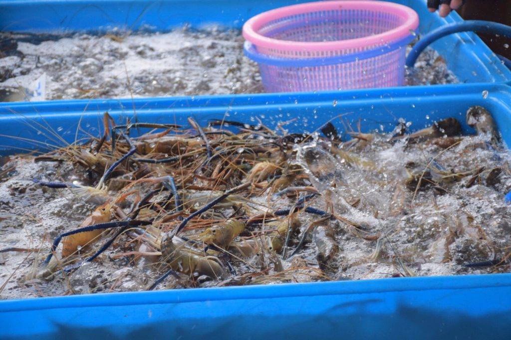 สำหรับกุ้งก้ามกรามที่นำมาจำหน่ายดังกล่าวนั้น เป็นผลผลิตที่มีคุณภาพจากฟาร์มของเกษตรกรในจังหวัดสุพรรณบุรี นครปฐม และราชบุรี ซึ่งมีความสด สะอาด ปลอดภัย โดยนำมาจำหน่ายในราคาถูกเทียบเท่ากับแหล่งผลิต อาทิ เพศผู้ ขนาด 9-10 ตัว/กิโลกรัม ราคา 350 บาท ขนาด 11-13 ตัว/กิโลกรัม ราคา 330 บาท ขนาด 14-16 ตัว/กิโลกรัม ราคา 300 บาท ขนาด 17-20 ตัว/กิโลกรัม ราคา 280 บาท เพศเมีย ขนาด 20-24 ตัว/กิโลกรัม ราคา 230 บาท ขนาด 25-29 ตัว/กิโลกรัม ราคา 210 บาท ขนาด 30-34 ตัว/กิโลกรัม 180 บาท เป็นต้น นอกจากนี้ ยังมีสินค้าสัตว์น้ำแปรรูปอื่น ๆ มาร่วมจำหน่ายด้วย อาทิ ปลาสลิดแดดเดียว ปลาช่อนแดดเดียว ผลิตภัณฑ์ปลาดุกแปรรูป เช่น ปลาดุกเส้นหวาน ปลาดุกแผ่น ปลาดุกร้า หนังปลาดุกทอดกรอบ ผลิตภัณฑ์ปลานิลแปรรูป เช่น จ๊อปลานิล ปลานิลแดดเดียว คั่วกลิ้งปลานิล เป็นต้น