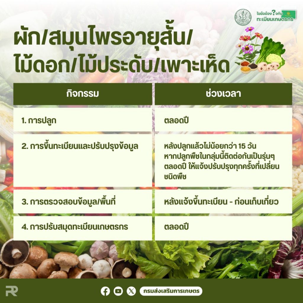 ไขข้อข้องใจ กับทะเบียนเกษตรกร 27 มี.ค. 256727 มี.ค. 2024 webmaster Infographic 593 กรอบระยะเวลาการขึ้นทะเบียน และปรับปรุงทะเบียนเกษตรกร กรมส่งเสริมการเกษตร ข่าวที่เกี่ยวข้อง ถ่านอัดแท่ง พลังงานทดแทน เพิ่มรายได้ วัสดุเหลือทิ้งจากกาแฟ สู่ปุ๋ยหมักรักษ์โลก เกษตรเมืองสระแก้วได้พัฒนา “ไลน์บอทโรคข้าว” คำแนะนำการปลูกพืชใช้น้ำน้อย หลังเก็บเกี่ยวข้าวนาปี พืชผักกับฤดูฝน แปรรูปลำไยให้แซบนัว! กลายเป็น “ยำลำไย”