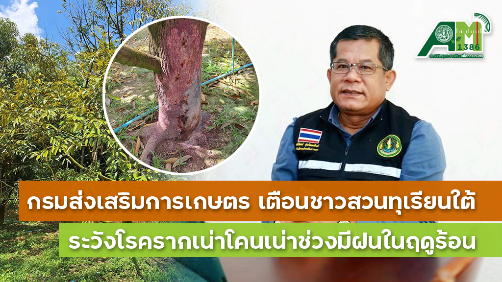 กรมส่งเสริมการเกษตร เตือนชาวสวนทุเรียนใต้ระวังโรครากเน่าโคนเน่าช่วงมีฝนในฤดูร้อน