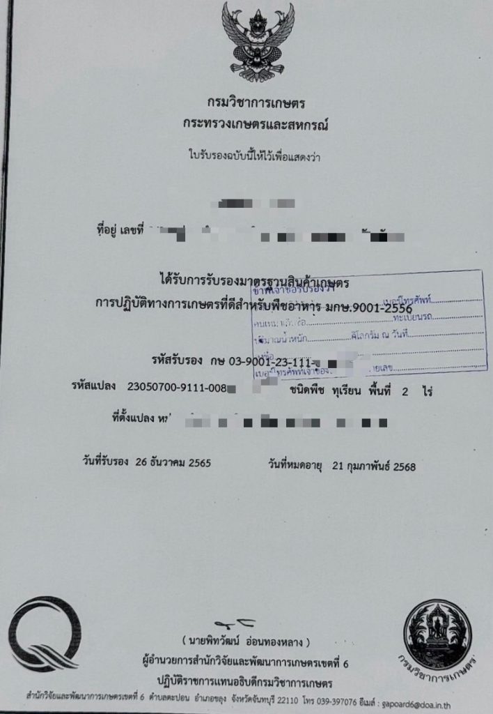 อธิบดีกรมส่งเสริมการเกษตร กล่าวอีกว่า กรมส่งเสริมการเกษตรได้ขอความร่วมมือเกษตรกรและมือตัดทุเรียน เก็บตัวอย่างทุเรียนที่ไม่มีร่องรอยการเปิดกรีด จำนวน 1 ผล นำมาตรวจเปอร์เซ็นต์น้ำหนักเนื้อแห้งของทุเรียน ณ จุดบริการตรวจก่อนตัดที่กำหนดไว้ก่อนการเก็บเกี่ยวอย่างน้อย 3 วัน และตัวอย่างที่ผ่านเกณฑ์ เจ้าหน้าที่จะออกหนังสือรับรองผลการตรวจเปอร์เซ็นต์น้ำหนักแห้งของทุเรียนตัวอย่างที่ส่งตรวจให้เกษตรกรผู้ส่งตรวจ ซึ่งมีเลขที่รหัสการรับรองมาตรฐาน และรหัสแปลง GAP ระบุในเอกสาร พร้อมทั้งแนบสำเนาเอกสารการรับรอง GAP ที่ซึ่งระบุรายละเอียดการจำหน่ายให้แก่ผู้รวบรวมรับซื้อ อันเป็นการป้องกันการสวมสิทธิ์และสามารถตรวจสอบย้อนกลับได้ และหากไม่ผ่านเกณฑ์ให้นำตัวอย่างมาตรวจซ้ำใหม่อีกครั้ง ด้านผู้ประกอบการ/โรงคัดบรรจุ (ล้ง) ขอความร่วมมือสื่อสารกับเกษตรกรและมือตัดทุเรียนให้ปฏิบัติตามมาตรการตรวจก่อนตัดอย่างเคร่งครัด และทุกครั้งที่รับซื้อทุเรียนจากเกษตรกร หรือมือตัด ต้องขอหนังสือรับรองผลการตรวจเปอร์เซ็นต์น้ำหนักเนื้อแห้งของทุเรียนทุกครั้ง ส่วนแผงรับซื้อทุเรียนในตลาดค้าส่ง ต้องขอหนังสือรับรองผลการตรวจเปอร์เซ็นต์น้ำหนักเนื้อแห้งของทุเรียนจากผู้ที่นำทุเรียนมาขาย เพื่อแสดงต่อเจ้าหน้าที่ชุดปฏิบัติการเฉพาะกิจป้องกันและแก้ไขปัญหาทุเรียนด้อยคุณภาพ (ทุเรียนอ่อน) ที่มาตรวจแผงรับซื้อ