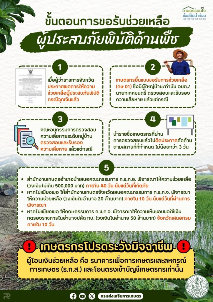 สำหรับขั้นตอนการขอรับความช่วยเหลือผู้ประสบภัยด้านพืช มีดังนี้