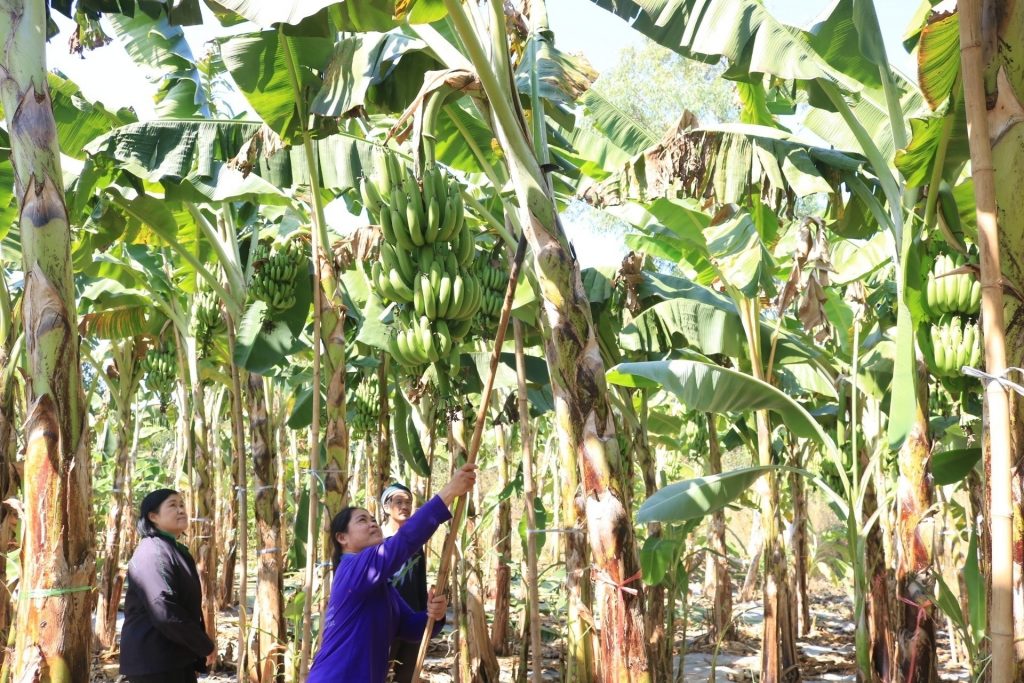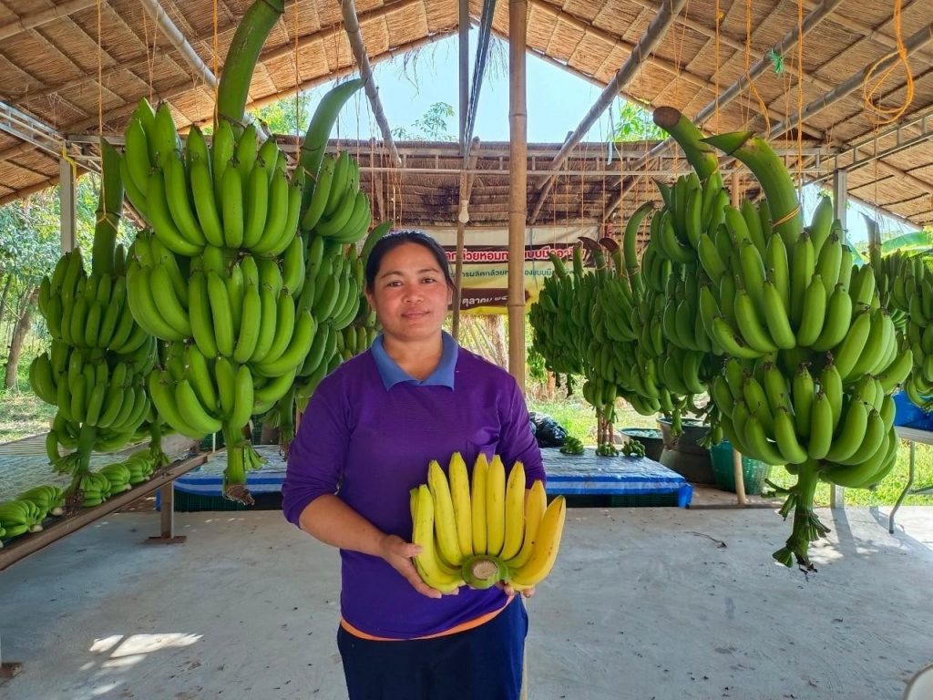 นางไพรวัน กลางโชคชัย เกษตรกรผู้ปลูกมันสำปะหลัง หมู่ 10 ตำบลหนองหัวช้าง อำเภอพรเจริญ จังหวัดบึงกาฬ ประสบปัญหาคือ ที่ผ่านมาพื้นที่ดังกล่าวไม่เหมาะสมปลูกมันสำปะหลัง ราคาผลผลิตต่ำ ใช้แรงงานมาก จึงเข้าร่วมโครงการฯ โดยการปลูกกล้วยหอมทองแทนมันสำปะหลัง จำนวน 3 ไร่ จากทั้งหมด 7 ไร่ พบว่า การปลูกกล้วยหอมทองสามารถสร้างรายได้ต่อไร่สูงกว่าการปลูกมันสำปะหลังถึง 20 เท่า โดยปลูกมันสำปะหลังมีต้นทุนรวมต่อไร่ 5,350 บาท ผลผลิตต่อไร่ 3,500 กิโลกรัม ราคา 2.5 บาทต่อกิโลกรัม ปลูกปีละ 1 ครั้ง รายได้รวมสุทธิต่อไร่ต่อปี 3,300 บาท ในขณะที่ปลูกกล้วยหอมทอง มีต้นทุนรวมต่อไร่ 26,700บาท ผลผลิตต่อไร่ 4,000 กิโลกรัม ราคา 15 บาทต่อกิโลกรัม ปลูกปีละ 2 ครั้ง รายได้รวมสุทธิต่อไร่ต่อปี 66,600 บาท นับว่าเป็นรายได้ที่น่าพอใจมากกว่าการปลูกมันสำปะหลัง