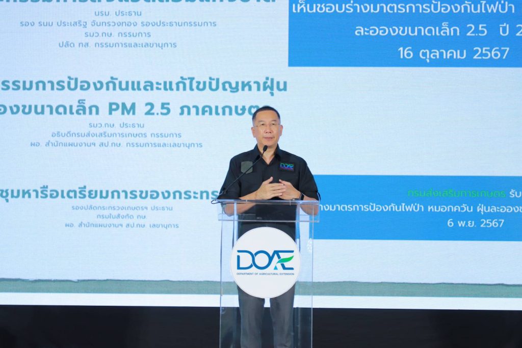 นายพีรพันธ์ คอทอง อธิบดีกรมส่งเสริมการเกษตร กล่าวเพิ่มเติมว่าสำหรับปี 2568 คณะกรรมการสิ่งแวดล้อมแห่งชาติที่มีนายกรัฐมนตรีเป็นประธาน ได้รับทราบมาตรการและเห็นชอบแนวทางในการขับเคลื่อนมาตรการรับมือสถานการณ์ ไฟป่า หมอกควัน และฝุ่นละออง ปี 2568 ซึ่งกรมส่งเสริมการเกษตรได้รับนโยบายและวางกรอบแนวทางการขับเคลื่อนมาตรการฯ และเน้นย้ำให้ทุกหน่วยงานขับเคลื่อนนโยบายสำคัญนี้ร่วมกัน โดยเฉพาะการขึ้นทะเบียนเกษตรกร เพื่อให้ครอบคลุมทุกเป้าหมาย เนื่องจากปัจจุบันการขึ้นทะเบียนเกษตรกร ยังเป็นภาคสมัครใจของเกษตร และประชาสัมพันธ์ข้อมูลต่างๆ ที่เกี่ยวข้องในทุกเวที เช่น การประชุมกำนันผู้ใหญ่บ้านในระดับท้องถิ่นของทุกพื้นที่ด้วย
