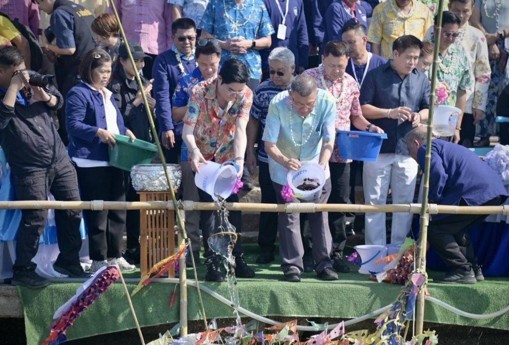 นายบัญชา สุขแก้ว อธิบดีกรมประมง กล่าวภายหลังพิธีเปิดงานว่า…งาน “เย็นทั่วหล้า มหาสงกรานต์ จังหวัดพะเยา ประจำปี 2568” ในวันนี้ กรมประมง โดยกระทรวงเกษตรและสหกรณ์ ได้ร่วมจัดกิจกรรม ด้านการประมง อาทิ กิจกรรมปล่อยพันธุ์สัตว์น้ำลงสู่เเหล่งน้ำธรรมชาติ รวม 2 ล้าน 5 หมื่นตัว ประกอบด้วย กุ้งก้ามกราม จำนวน 1,700,000 ตัว ปลาตะเพียน จำนวน 250,000 ตัว และ ปลาจาด 100,000 ตัว กิจกรรมแข่งขันการตกปลาชะโด การแข่งขันประกอบอาหารจากปลาชะโด กิจกรรมรับซื้อลูกปลาชะโดที่มีชีวิต เพื่อลดจำนวนประชากรปลาชะโด เเละนิทรรศการให้ความรู้เกี่ยวกับปลาชะโด เพื่อสร้างการรับรู้และตระหนัก ถึงผลกระทบจากการนำพันธุ์ปลาต่างถิ่นบางชนิดมาปล่อยสู่กว๊านพะเยาและแหล่งน้ำธรรมชาติอื่นๆ โดยมุ่งหวังให้เทศกาลแห่งความสุขนี้ เป็นพื้นที่สำหรับการท่องเที่ยวเชิงอนุรักษ์ที่มีทั้งความสนุก อิ่มบุญ อิ่มใจ และเป็นโอกาสสำคัญในการฟื้นฟูทรัพยากรธรรมชาติและเสริมสร้างความยั่งยืนให้กับแหล่งน้ำของชุมชน ตามนโยบายของ นายอัครา พรหมเผ่า รัฐมนตรีช่วยว่าการกระทรวงเกษตรและสหกรณ์