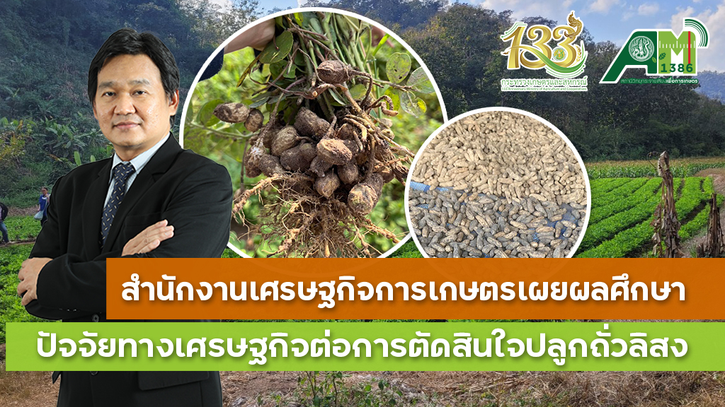 สำนักงานเศรษฐกิจการเกษตร (สศก.) เผยผลศึกษาปัจจัยทางเศรษฐกิจต่อการตัดสินใจปลูกถั่วลิสง หนุนเกษตรกรที่มีพื้นที่เพาะปลูกนอกเขตชลประทาน หันปลูกถั่วลิสงเพิ่มรายได้
