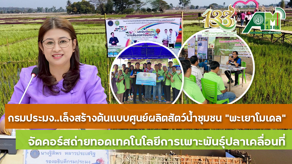 กรมประมง..เล็งสร้างต้นแบบศูนย์ผลิตสัตว์น้ำชุมชน ภายใต้ “พะเยาโมเดล” จัดคอร์สถ่ายทอดเทคโนโลยีการเพาะพันธุ์ปลาเคลื่อนที่เพื่อปล่อยเลี้ยงในนาข้าวสรรพสี หนุนส่งเสริมวิถีการทำเกษตรแบบผสมผสาน สร้างแหล่งอาหารที่ยั่งยืน