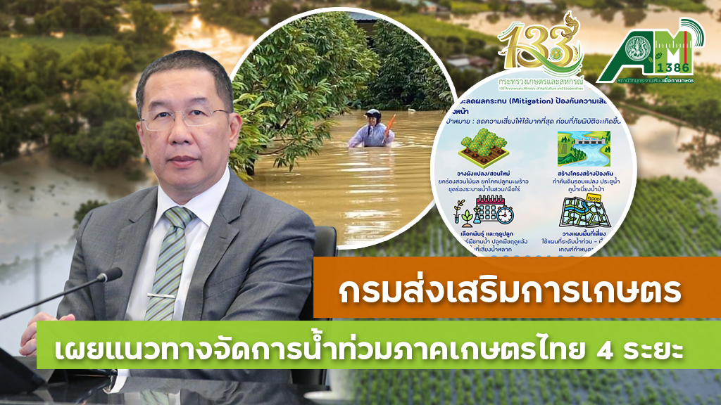 กรมส่งเสริมการเกษตร เผยแนวทางจัดการน้ำท่วมภาคเกษตรไทย 4 ระยะ