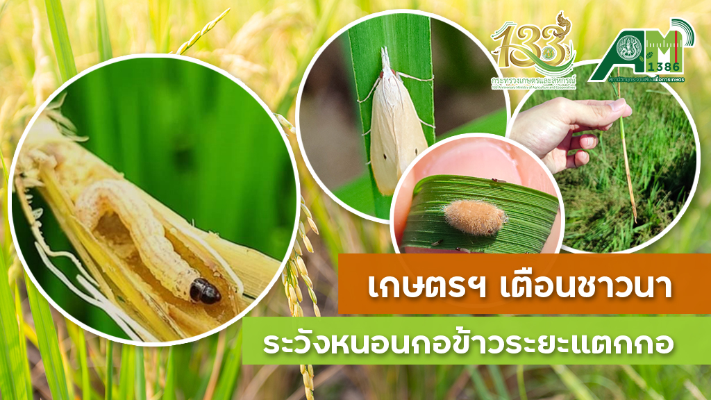 กรมส่งเสริมการเกษตร แจ้งเตือนเกษตรกรผู้ปลูกข้าว ระวังหนอนกอข้าวระยะแตกกอ