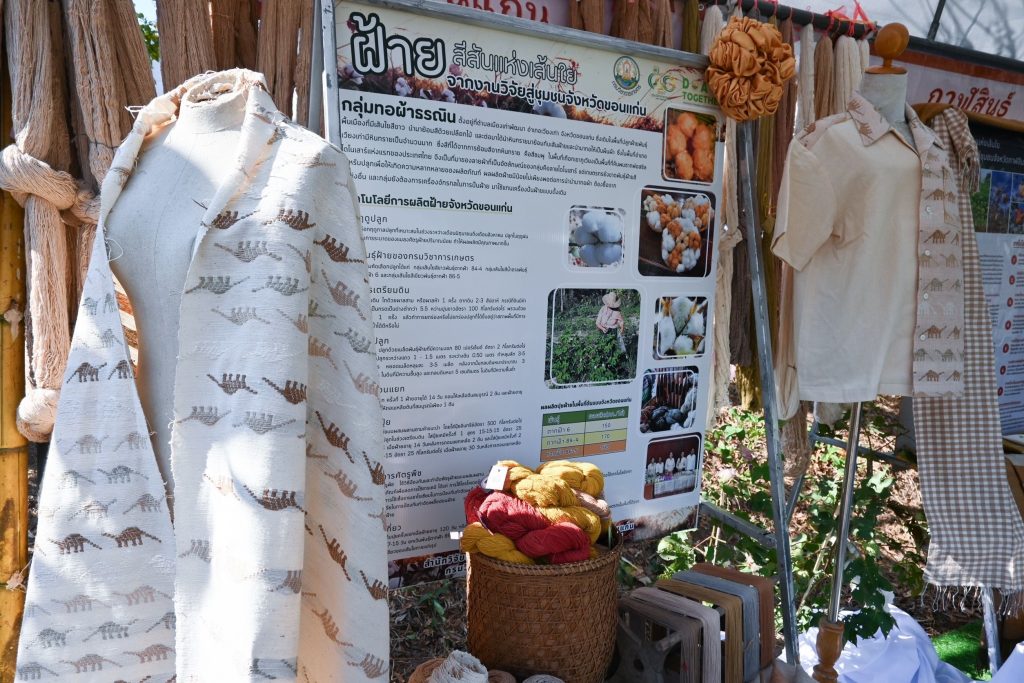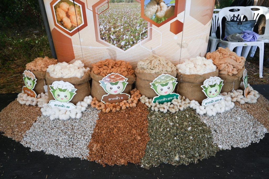 นายภัสชญภณ หมื่นแจ้ง รองอธิบดีกรมวิชาการเกษตร ในฐานะโฆษกกรมวิชาการเกษตร เปิดเผยว่า เพื่อสร้างรายได้ สร้างโอกาส และคุณภาพชีวิตที่ดีขึ้นให้เกษตรกรไทย ตามนโยบายของกระทรวงเกษตรและสหกรณ์  ได้มอบหมายให้สำนักวิจัยและพัฒนาการเกษตรเขตที่ 3 จังหวัดขอนแก่น ดำเนินการส่งเสริมและพัฒนาสินค้าเกษตรอัตลักษณ์ผ้าฝ้ายและผ้าย้อมครามพื้นเมืองที่มีชื่อเสียงในพื้นที่ภาคตะวันออกเฉียงเหนือตอนบน โดยให้นำผลงานวิจัยการผลิตฝ้ายพันธุ์ดีที่มีเอกลักษณ์ของศูนย์วิจัยพืชไร่นครสวรรค์ ได้แก่ ฝ้ายเส้นใยสีน้ำตาล พันธุ์ตากฟ้า 3 พันธุ์ตากฟ้า 6 และพันธุ์ตากฟ้า 8 ฝ้ายเส้นใยยาวสีขาว พันธุ์ตากฟ้า 2 พันธุ์ตากฟ้า 7 และพันธุ์ตากฟ้า 84-4 ฝ้ายเส้นใยสีเขียวพันธุ์ตากฟ้า 86-5 พร้อมทั้งนำเทคโนโลยีการผลิตครามที่ให้ปริมาณและคุณภาพเนื้อครามสูง ของศูนย์วิจัยและพัฒนาการเกษตรสกลนคร มาขยายผลต่อยอดในพื้นที่เพื่อให้เกษตรกรนำไปปลูกและแปรรูปเป็นผลิตภัณฑ์สินค้าเกษตรอัตลักษณ์