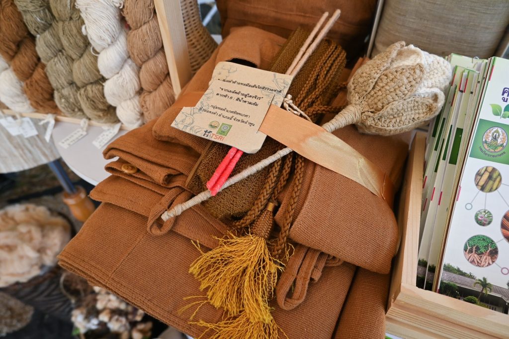 ไม่ต้องย้อมสี เป็นมิตรกับสิ่งแวดล้อม สามารถนำไปทอเป็นผืนผ้าได้ทันทีทั้งแบบสีพื้นและแบบสลับสี