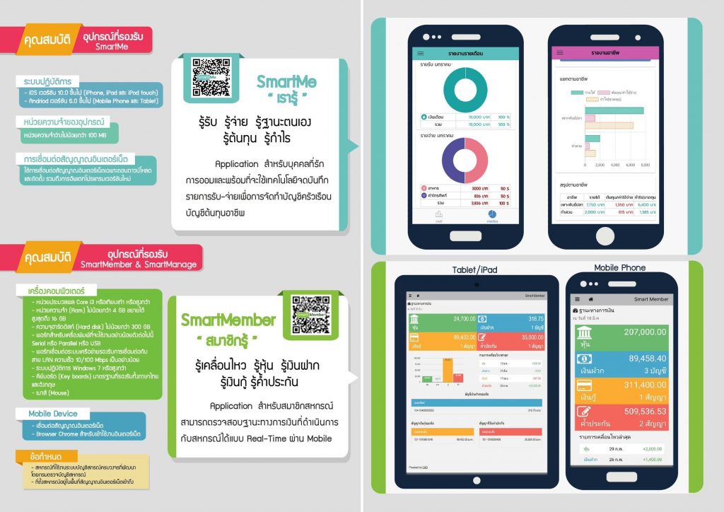SmartMember “สมาชิกรู้” Application สำหรับสมาชิกสหกรณ์ ใช้ตรวจสอบข้อมูลทางการเงินของตนเองและทำธุรกรรมกับสหกรณ์ ผ่าน Smartphone ของตนเอง เพื่อสร้างการมีส่วนร่วมและลดความเสี่ยงในการทุจริต