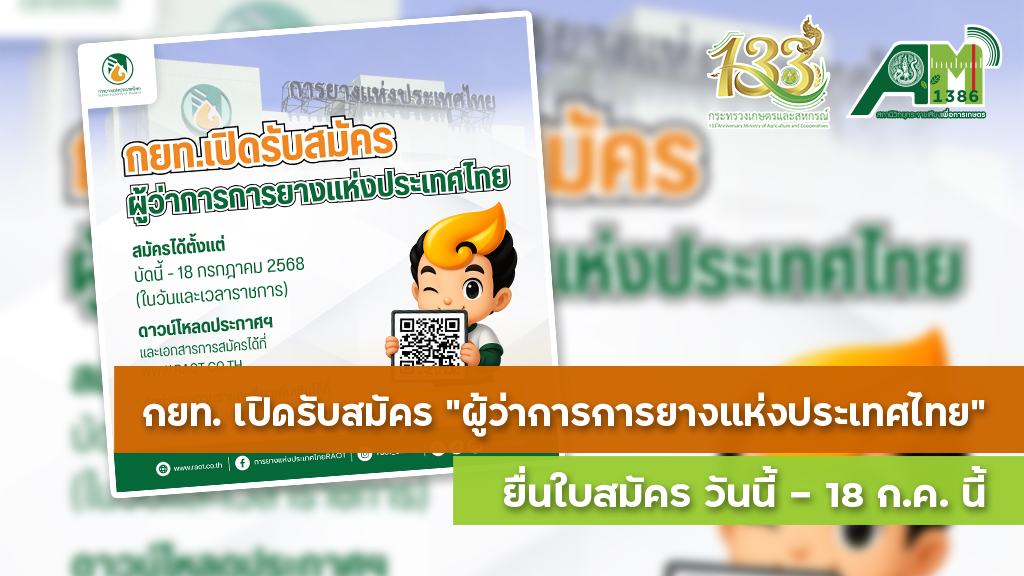 การยางแห่งประเทศไทย (กยท.) เปิดรับสมัคร “ผู้ว่าการการยางแห่งประเทศไทย” ยื่นใบสมัคร วันนี้ – 18 ก.ค. นี้