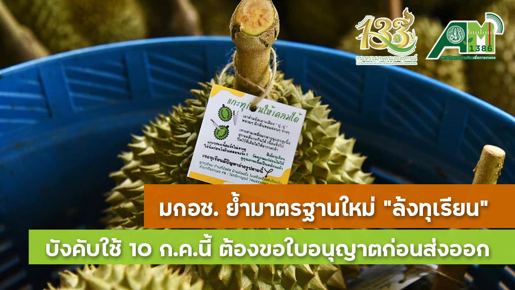 มกอช. ย้ำมาตรฐานใหม่ “ล้งทุเรียน” บังคับใช้ 10 ก.ค.นี้ ต้องขอใบอนุญาตก่อนส่งออก พร้อมอำนวยความสะดวกการส่งออกเพื่อให้เป้นตามมาตรฐานบังคับได้