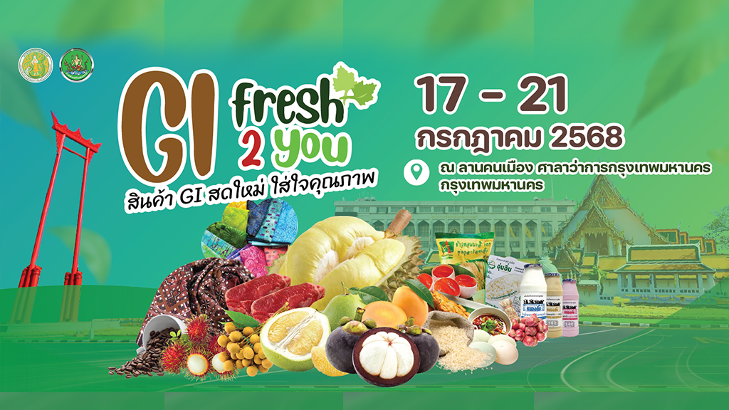 งาน GI Fresh 2 You “สินค้า GI สดใหม่ ใส่ใจคุณภาพ“ ยกขบวนสินค้าดีมีคุณภาพจากสหกรณ์มาจำหน่ายสู่ผู้บริโภค 17 – 21 ก.ค. 68 นี้ ณ ลานคนเมือง ศาลาว่าการกรุงเทพมหานคร