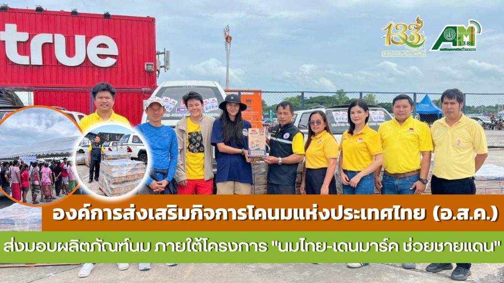 วันที่ 30 กรกฎาคม 2568 นายสมพร ศรีเมือง ผู้อำนวยการองค์การส่งเสริมกิจการโคนมแห่งประเทศไทย (อ.ส.ค.) มอบหมายให้ นายแดนณรงค์ ทองอันตัง ผู้ช่วยผู้อำนวยการ อ.ส.ค. พร้อมพนักงานผู้เกี่ยวข้อง ส่งมอบผลิตภัณฑ์นม ยูเอชที ไทย-เดนมาร์ค ผลิตจากนมโคแท้ 100% ไม่ผสมนมผง ภายใต้โครงการ “นมไทย-เดนมาร์ค ช่วยชายแดน” ร่วมส่งมอบผลิตภัณฑ์นมยูเอชที 99,999 กล่อง ที่เปิดให้ประชาชนผู้มีจิตเมตตาร่วมสมทบทุนบริจาคผลิตภัณฑ์นมไทย-เดนมาร์ค กับ อ.ส.ค. โดยในครั้งนี้ได้ส่งมอบผลิตภัณฑ์นม ยูเอชที รสจืด ขนาด 180 มล. จำนวน 13,296 กล่อง ให้แก่ ศูนย์พักพิงชั่วคราวสนามช้างอินเตอร์เนชั่นแนลเซอร์กิต ต.อิสาณ อ.เมืองบุรีรัมย์ จ.บุรีรัมย์ เพื่อส่งต่อให้กับ ทหาร ผู้ปฎิบัติงาน เด็ก เยาวชน ผู้สูงอายุ ประชาชนทั่วไป ผู้ที่ได้รับผลกระทบจากสถานการณ์ปะทะ ไทย-กัมพูชา ในพื้นที่จังหวัดบุรีรัมย์