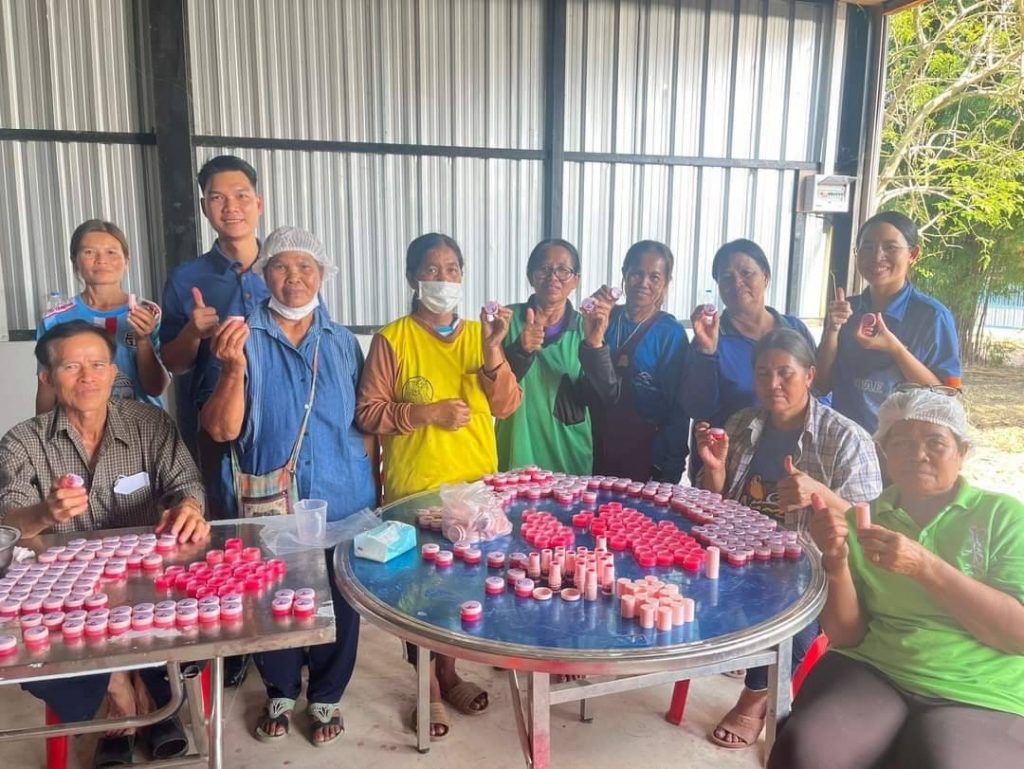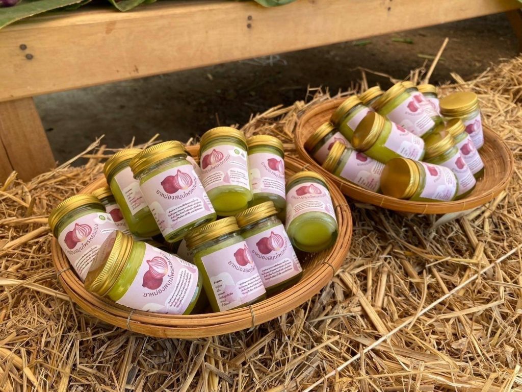 ด้านสถานการณ์การผลิตปี 2568 ของกลุ่มแปลงใหญ่ เกษตรกรจะทำการเพาะปลูกหอมแดง 2 รอบการผลิต โดยรอบแรกเพาะปลูกช่วงเดือนพฤศจิกายน – ธันวาคม ระยะเวลาเพาะปลูกจนถึงเก็บเกี่ยว 120 วัน เก็บเกี่ยวช่วงเดือนมกราคม – กุมภาพันธ์ และรอบที่ 2 เพาะปลูกช่วงเดือนมิถุนายน – กรกฎาคม ระยะเวลาเพาะปลูกจนถึงเก็บเกี่ยว 45 วัน เก็บเกี่ยวช่วงเดือนกรกฎาคม – สิงหาคม โดยผลผลิตหอมแดงทั้ง 2 รอบการผลิตรวมทั้งสิ้น 233 ตัน คิดเป็นผลผลิตเฉลี่ยประมาณ 1,500 กิโลกรัม/ไร่/ปี ซึ่งเกษตรกรนิยมเพาะปลูกช่วงฤดูหนาวมากที่สุด เนื่องจากสภาพอากาศเอื้ออำนวย หอมแดงชอบอากาศหนาวทำให้หัวหอมแดงมีขนาดหัวใหญ่ ได้ผลผลิตดี และน้ำหนักเยอะ โดยราคาหอมแดงคละ ณ วันที่ 9 สิงหาคม 2568 เฉลี่ยอยู่ที่ 25 – 27 บาท/กิโลกรัม ด้านการจำหน่าย ผลผลิตส่วนใหญ่ ร้อยละ 90 จำหน่ายให้กับพ่อค้าคนกลางจากต่างจังหวัด ได้แก่ จังหวัดศรีสะเกษ และผลผลิต ร้อยละ 10 เกษตรกรจำหน่ายให้ผู้บริโภคโดยตรง นอกจากนี้ ผลผลิตบางส่วนกลุ่มแปลงใหญ่ได้นำมาแปรรูปเป็นผลิตภัณฑ์ยาหม่องหอมแดง ในชื่อแบรนด์หอมมีชัย เพื่อจำหน่ายและนำไปใช้ภายในกลุ่ม ทั้งนี้ จากการจำหน่ายผลผลิตของกลุ่มแปลงใหญ่ สามารถสร้างรายได้เฉลี่ย 4,400,000 บาท/ปี รายได้เฉลี่ยสุทธิ (กำไร) 2,400,000 บาท/ปี