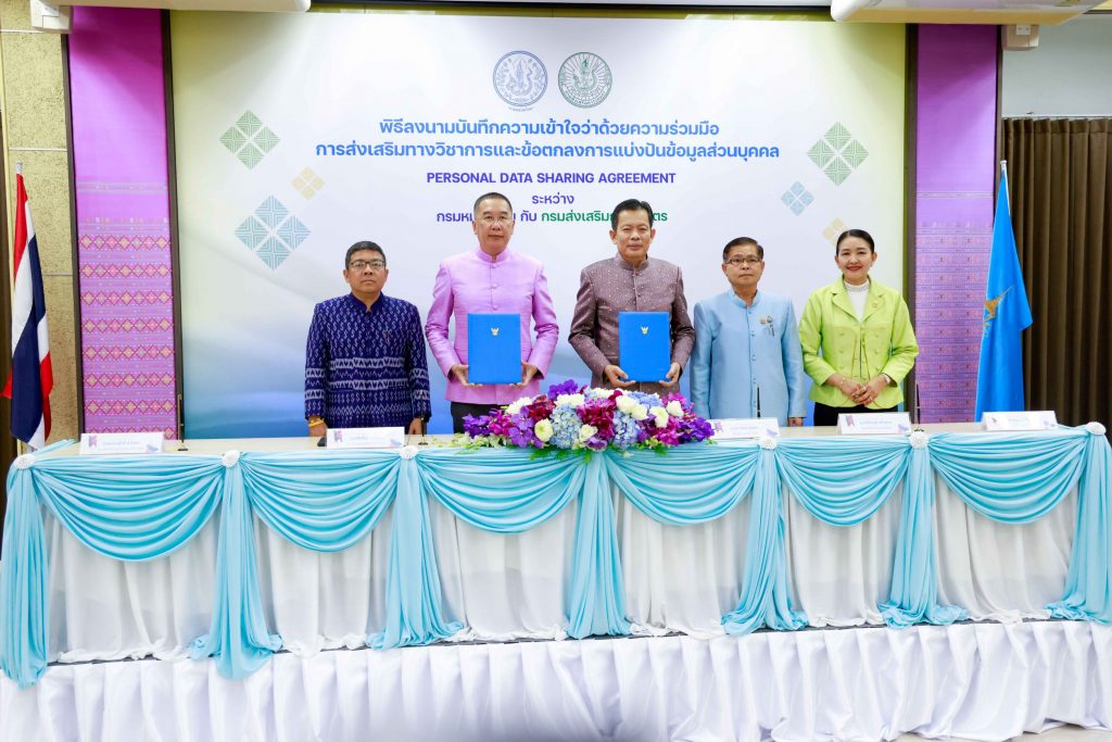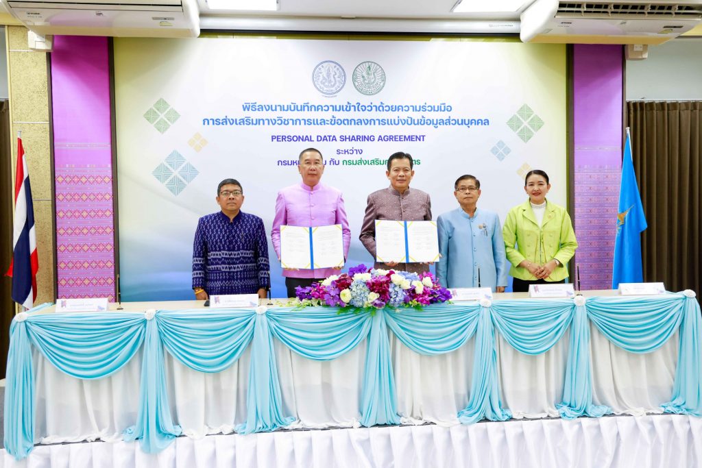 วันที่ 11 กันยายน 2568 – กรมหม่อนไหม กระทรวงเกษตรและสหกรณ์ จัดพิธีลงนามบันทึกความเข้าใจว่าด้วยความร่วมมือการส่งเสริมทางวิชาการและข้อตกลงการแบ่งปันข้อมูลส่วนบุคคล (Personal Data Sharing Agreement) กับกรมส่งเสริมการเกษตร ณ ห้องประชุมนกยูงสีทอง กรมหม่อนไหม เพื่อบูรณาการข้อมูลและองค์ความรู้ ขับเคลื่อนภาคการเกษตรและอุตสาหกรรมหม่อนไหมไทยให้เติบโตอย่างเป็นระบบ