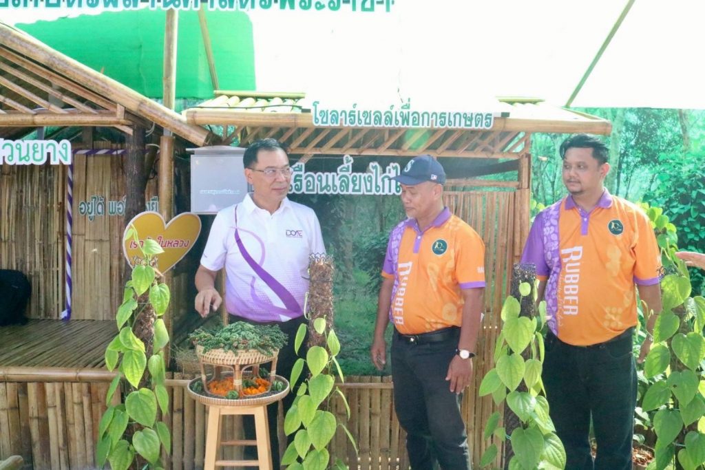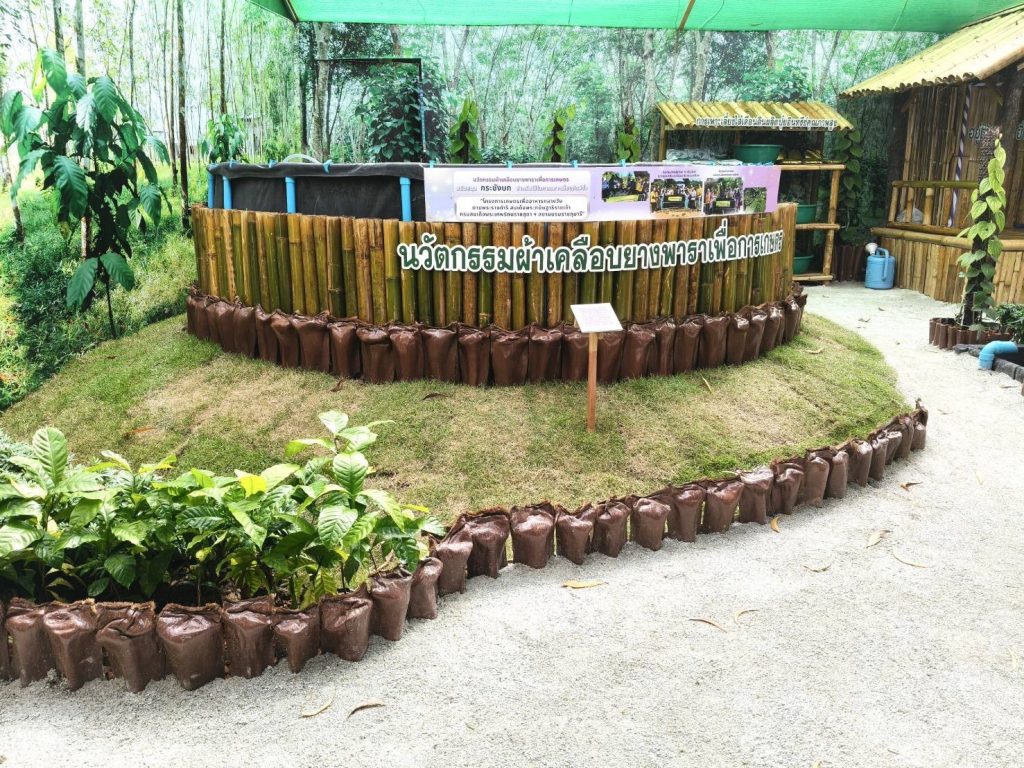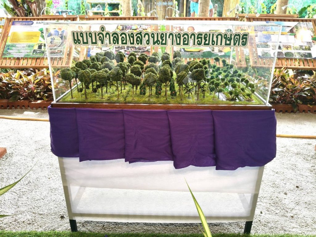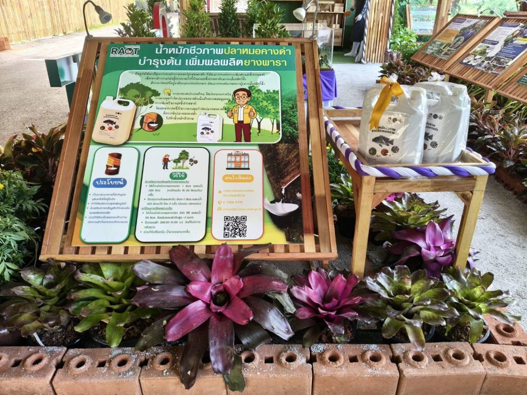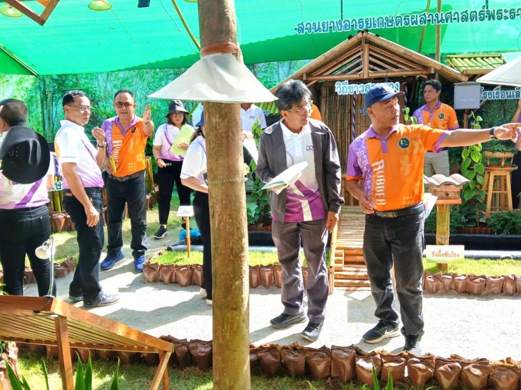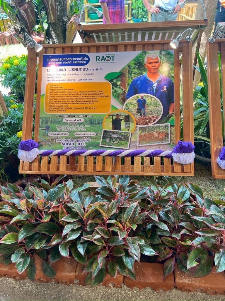 สำหรับนิทรรศการ “นวัตกรรมยางพารา พัฒนาอาชีพชาวสวนยาง สร้างสังคมที่ยั่งยืน” ถือเป็นนิทรรศการที่นำเสนอเนื้อหาด้านยางพาราผ่านการถ่ายทอดองค์ความรู้และนวัตกรรมยางพาราที่ช่วยยกระดับอาชีพและคุณภาพชีวิตชาวสวนยางอย่างเป็นรูปธรรม อาทิ ระบบเจาะยางร่วมกับฮอร์โมนเอทธิลีนนวัตกรรมผ้าเคลือบยางพาราเพื่อการเกษตร แบบจำลองสวนยางอารยเกษตร การปลูกกาแฟร่วมสวนยาง รวมถึงนำเสนอข้อมูลเกี่ยวกับการดำเนินงานตามพันธกิจและนโยบายของ กยท. อย่างโครงการโฉนดต้นยางพาราเพื่อสร้างมูลค่าให้สวนยางพารา และโครงการน้ำหมักชีวภาพจากปลาหมอคางดำ นอกจากนี้ ภายในนิทรรศการยังได้นำเสนอผลิตภัณฑ์แปรรูปจากยางพารา เช่น รองเท้าบูทจากยางพารา ยางยืดเพื่อสุขภาพ กระเป๋าจากยางพารา และเฟอร์นิเจอร์ต่างๆ จากไม้ยางพารา เป็นต้น