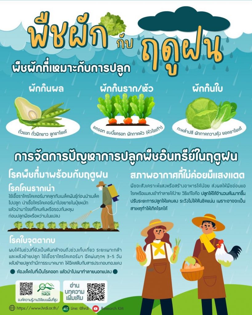 พืชผักกับฤดูฝน 19 ก.ย. 2568 webmaster Infographic 70 พืชผักกับฤดูฝน ข่าวที่เกี่ยวข้อง ถ่านอัดแท่ง พลังงานทดแทน เพิ่มรายได้ วัสดุเหลือทิ้งจากกาแฟ สู่ปุ๋ยหมักรักษ์โลก เกษตรเมืองสระแก้วได้พัฒนา “ไลน์บอทโรคข้าว” คำแนะนำการปลูกพืชใช้น้ำน้อย หลังเก็บเกี่ยวข้าวนาปี แปรรูปลำไยให้แซบนัว! กลายเป็น “ยำลำไย” ขุมทรัพย์บนพื้นปูน นวัตกรรมเกษตรคนมีพื้นที่จำกัด