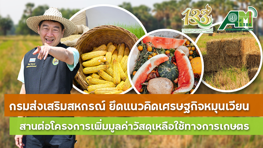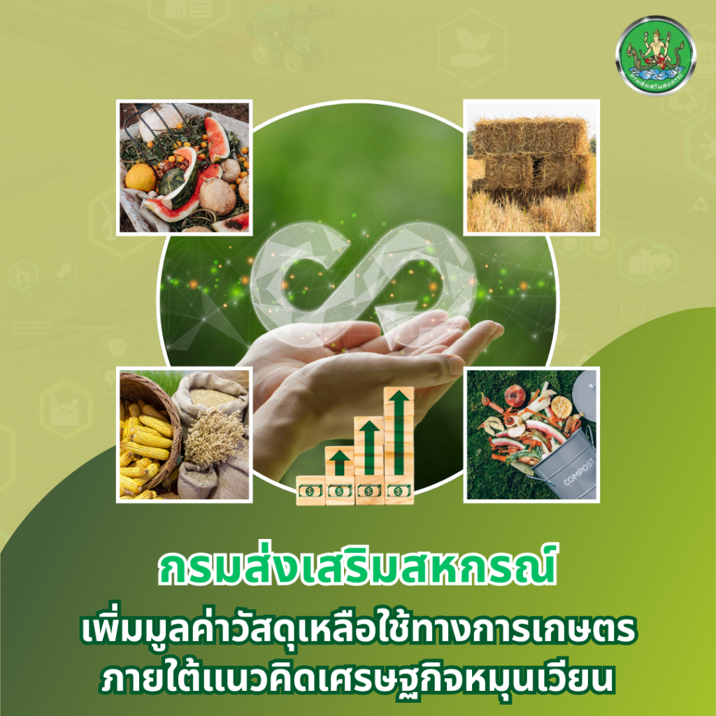 การสร้างมูลค่าเพิ่มจากวัสดุเหลือใช้ทางการเกษตรส่งเสริมการใช้ประโยชน์จากวัสดุเหลือใช้ทางการเกษตรมาสร้างมูลค่าเพิ่มหรือที่เรียกว่า เศรษฐกิจหมุนเวียน ซึ่งเป็นกิจกรรมที่ช่วยให้เกษตรกร สมาชิกสหกรณ์และกลุ่มเกษตรกรสามารถลดต้นทุนและสร้างมูลค่าเพิ่ม รวมทั้งป้องกันและแก้ไขปัญหาฝุ่นละออง ซึ่งจะส่งผลให้เกิดสินค้าเกษตรชีวภาพที่มีมูลค่าเพิ่มขึ้น และช่วยลดมลภาวะต่อสิ่งแวดล้อม รวมถึงเป็นแนวทางแก้ไขปัญหาการแสวงหาพลังงานทดแทนที่ยั่งยืน