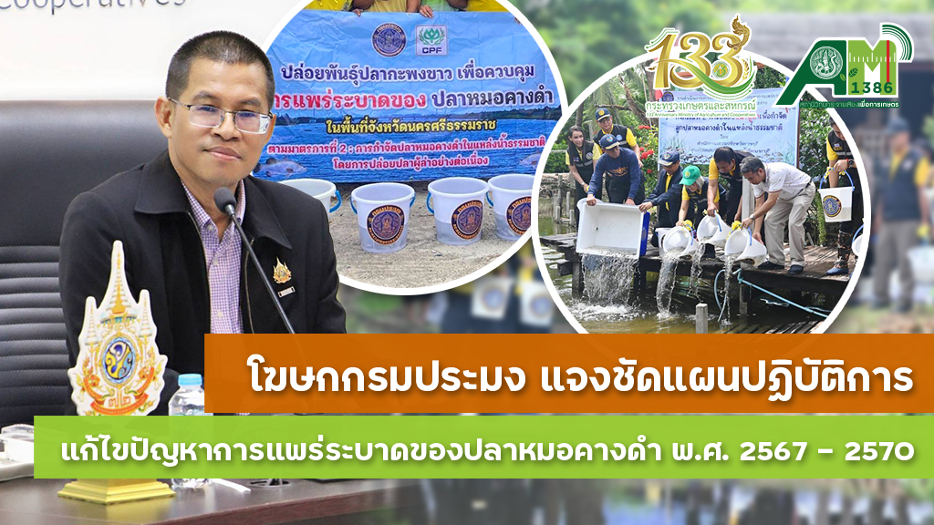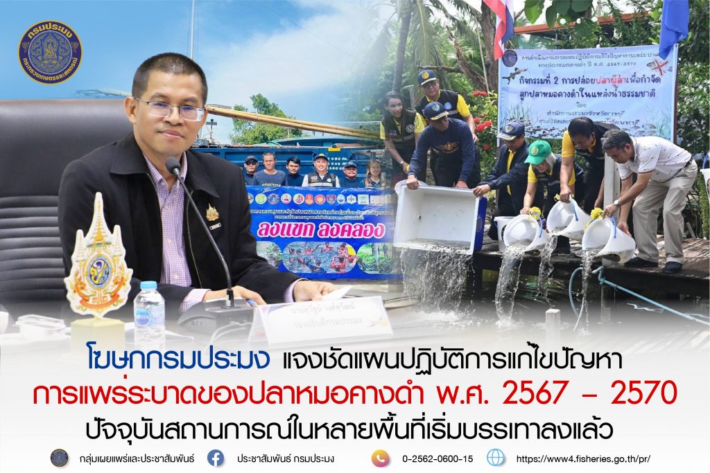 โฆษกกรมประมง แจงชัดแผนปฏิบัติการแก้ไขปัญหาการแพร่ระบาดของปลาหมอคางดำ พ.ศ. 2567 – 2570 กรมประมงดำเนินการอย่างต่อเนื่อง ปัจจุบันสถานการณ์ในหลายพื้นที่เริ่มบรรเทาลงแล้ว