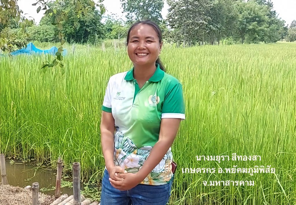 นางมยุรา สีทองสา หนึ่งในเกษตรกรอำเภอพยัคฆภูมิพิสัย จังหวัดมหาสารคามที่เข้าร่วมโครงการฯ
