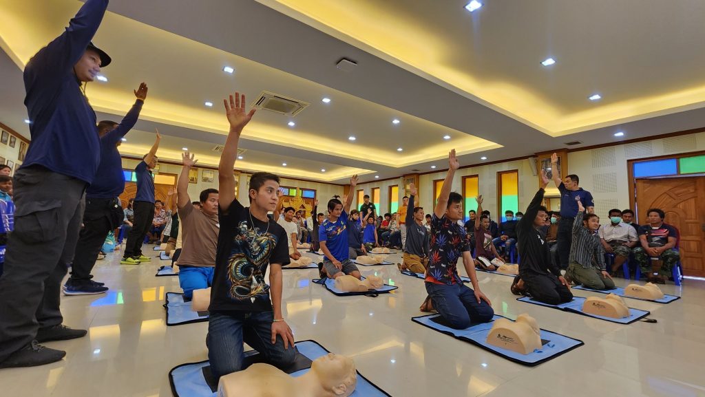 เพื่อขับเคลื่อนนโยบายของกระทรวงเกษตรและสหกรณ์ กรมประมงจึงได้จัดโครงการฝึกอบรมหลักสูตรกาปฐมพยาบาลและการกู้ชีพเบื้องต้นสำหรับผู้ควบคุมเรือและแรงงานประมงขึ้น โดยมีวัตถุประสงค์เพื่อให้ความรู้แก่ลูกเรือประมง ให้มีความรู้ความเข้าใจในการช่วยเหลือผู้ประสบเหตุระหว่างปฏิบัติงานในทะเล เพื่อเตรียมความพร้อมก่อนออกปฏิบัติงานในเรือประมงให้เป็นไปตามมาตรฐานด้านความปลอดภัย โดยมีเนื้อหาครอบคลุมทั้งภาคทฤษฎีและภาคปฏิบัติ เช่น การช่วยฟื้นคืนชีพ (CPR) การช่วยเหลือผู้ประสบอุบัติเหตุตกน้ำ การปฐมพยาบาลผู้บาดเจ็บ และการดับเพลิงเบื้องต้น เพื่อให้ลูกเรือประมงสามารถนำทักษะเหล่านี้ไปใช้ได้จริงเมื่อเกิดเหตุฉุกเฉินทั้งในเรื่องของการประเมินอาการผู้บาดเจ็บและการให้การช่วยเหลืออย่างถูกต้องปลอดภัย อันจะช่วยเพิ่มโอกาสรอดชีวิตของผู้ประสบเหตุ โครงการนี้นับเป็นอีกก้าวสำคัญในการยกระดับมาตรฐานแรงงานประมงให้สอดคล้องกับกฎหมายและข้อกำหนดสากล เสริมสร้างภาพลักษณ์ที่ดีต่อภาคประมงไทยด้านการดูแลแรงงานไทยและแรงงานต่างด้าวในเวทีโลก